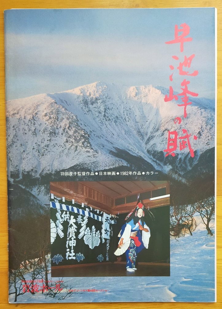 In 1981 she screened the movie in one of the villages, just a private screening held at a community hall. It was a success, and the people of the towns saw it several times. Haneda was particularly enthusiastic to hear that the women of the villages were finally able to properly see the festival and the kagura dance, since during the main festival they were usually so busy cooking, preparing and organizing everything, that they didn’t usually have time to see the kagura or enjoy the festival. Once she was back in Tokyo, Haneda showed the movie to Kawakita Kashiko and Takano Etsuko, at the time the leaders of Equipe de Cinema. They were so impressed by Hayachine no kagura, that they offered Haneda the possibility of having it screened at Iwanami Hall. She reluctantly accepted, but the film was still too long, and so it was decided to shorten it of 10 minutes. The final result was titled 早池峰の賦 Ode to Mt. Hayachine (185′), and was screened at Iwanami Hall starting from the Golden Week of 1982 (May). The documentary was screened for several weeks and was praised by viewers and critics alike.