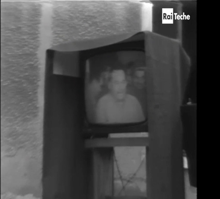 Not only it highlights the dialogical effect and power of the video within a video, but it points towards an epochal shift. The struggle moves from the cinema hall to the domestic screen: audiovisual militancy no longer relies on the theatrical space as its primary channel of expression; instead, it symbolically “occupies” what was then the medium of power par excellence—television. Videobase would push to the extreme this use of the remediated and reframed images through television sets in the aforementioned L’isola dell’isola (The island’s island) shot between 1974 and 1977 in the small island of San Pietro, Sardinia.