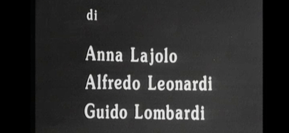 La casa è un diritto non un privilegio (Housing is a Right, not a Privilege, 1970) “Our first work together was a 16 mm film about the slum dwellers and evictees of Rome, shot for Unitelefilm. It was a collective film, with group direction and discussion during the editing. Working this way, we had the opportunity to evaluate the work through discussion at all levels, including ideological ones.” (Anna Lajolo, Guido Lombardi, 1974)